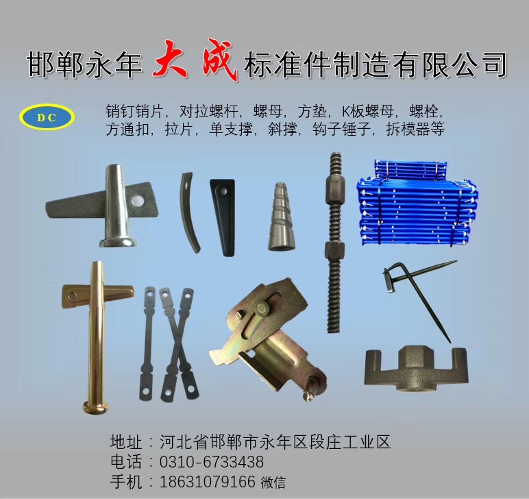 點(diǎn)擊數(shù):51522019-07-08 15:54:18 來(lái)源: 鋁模板銷(xiāo)釘_鋁模板配件_建筑扣件螺栓_扣件螺絲生產(chǎn)廠家-永年區(qū)大成標(biāo)準(zhǔn)件制造有限公司